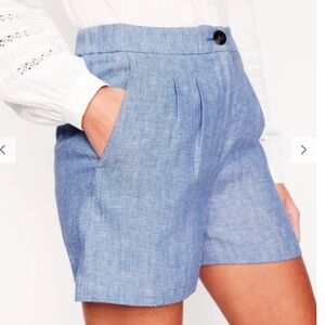 Boden | Women's Dulwich Pleated Linen Chambray Shorts | 6" Size US 12