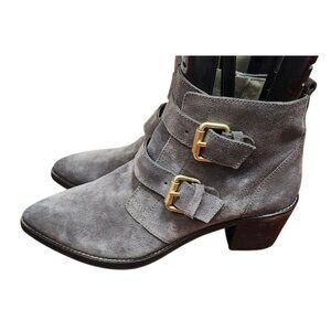 Boden Women’s Gray Suede Ankle Boots Size EU 42 Gold Buckle Strap
