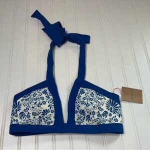 Boden Womens Ithaca Halter Bikini Top Swim Lake Blue Gardenia US 8 NEW. 377