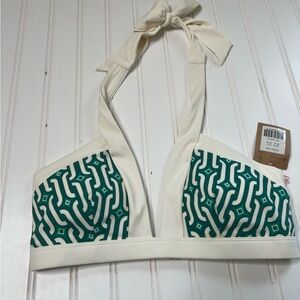 Boden Womens Ithaca Halter Bikini Top US 8 Green Geometric Swim NEW. 392