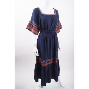 Boden Womens Jersey Embroidered Midi Dress UK 8 US 4 Navy Blue Boho D0263 NWT