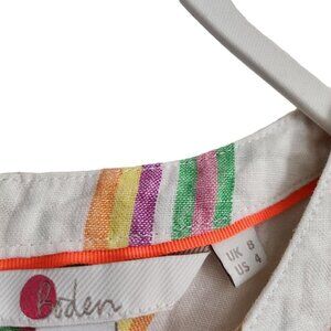 Boden Womens Katie Top 4 Striped 100% Linen Back Button Up Blouse Crew Neck.