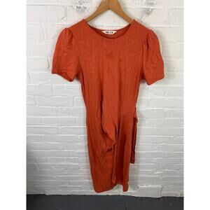 Boden Womens Knot Front Jersey Midi Dress Round-Neck Short Sleeve Orange Size 8