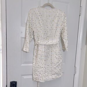 boden kelsey linen dress petite 6p, white gold print belted short dress, breathable natural fiber boden linen summer dress, v neck 3/4 sleeve petite tunic, sustainable quiet luxury resort wear dress, coastal chic white linen boden dress petite, vacation ready lightweight linen dress, minimalist summer brunch dress, petite resort chic linen shift