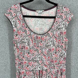 Boden Womens Margot Scoop Neck Dress Size 10 White Red Paisley Modal Pockets