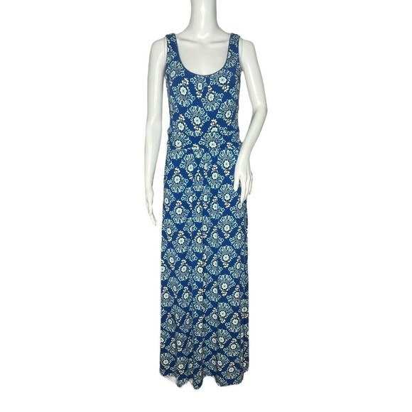 Boden Women’s Maxi Dress Blue White Floral Flowers Jersey Knit Sleeveless 6R