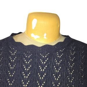 Boden Womens Medium Navy Blue Knit Sweater Scalloped Pointelle Wool Cashmere