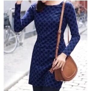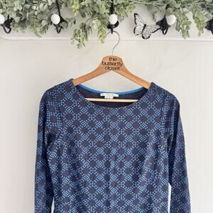 Boden Women’s Mia Jersey Shift Dress Blue Polka Dot 6R Long-Sleeve Mini CP