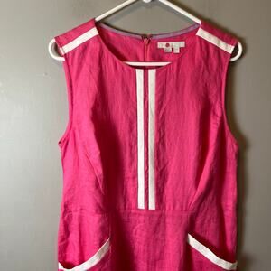 Boden Women's Midi Dress Size 12 Pink 100% Linen A-Line Raw Hem