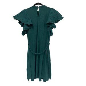 Boden Womens Mini Dress UK 12 US 8 Green Ruffled Flutter Sleeve Belted D0530 NWT