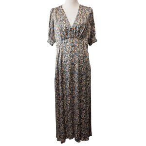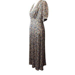 Boden Womens NWT Sz 10R Multicolor Floral Satin Short Puff Sleeve Midi Tea Dress