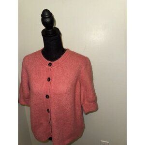 Boden Women’s Pink Chunky Cardigan Puff Sleeve Sweater Alpaca Blend Size 14