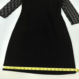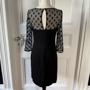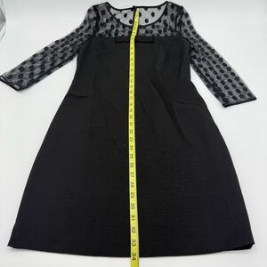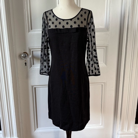 Boden Women’s Ponte Pencil Dress Polka Dot Sheer Mesh Sleeves Bow Black Size 4R