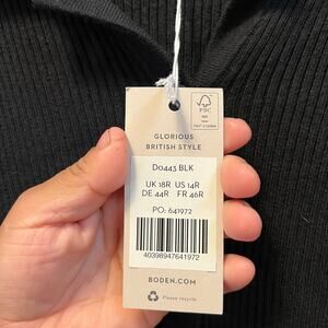 Boden Womens Ribbed Knit Mini Dress Sz 14 R Black Wool Cotton Fit & Flare New