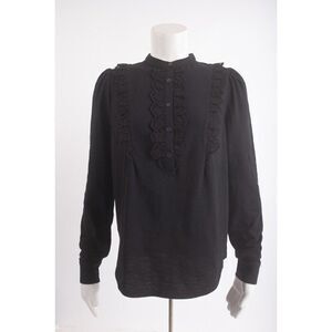 Boden Womens Ruffle Top Jersey Shirt Eyelet UK 8 US 4 Black T1103 NWT