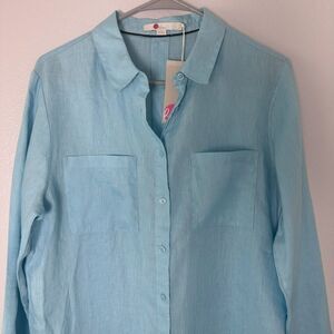 Boden Women's Shirt Size(6/US L) 100% Linen Long Sleeve Button Down Light Blue