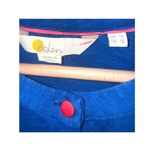 Add a pop of color to your wardrobe with this adorable Boden cardigan. Features a vibrant blue base with fun rainbow-colored buttons, lightweight fabric, and a flattering crew neckline. Perfect for layering in any season!