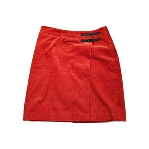 Boden Womens Skirt 14L Orange Faux Wrap Corduroy Lined Buckle Academia Career
