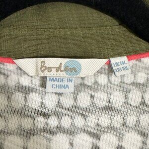 Boden Women's Sleeveless Midi Shirt Dress Collar Pockets Tie Belt Size 10L Olive Green White - Preppy, Summer, Casual, Travel, Vacation, Business Casual, Shift with Belt