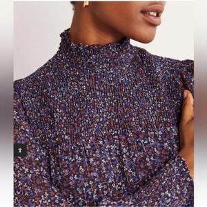 Boden Womens Smocked Midi Dress sz 10R Metallic Flowy Prarie Boho NWT