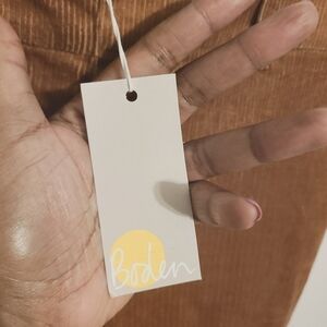 Women's high rise corduroy flared pants by Boden, size 8 long. Front slant and back button pockets; clasp, zipper and button closure. Belt loops. Fabric blend of cotton and elastane. Official color: Spiced Latte Brown. These pants are new with tags, without flaws.