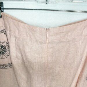 Boden Womens Sz 4R Linen Blend Pink Embroidered Skirt Lined. 55% linen, 45% cotton.