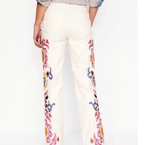 - The white denim + embroidery combo makes them stand out — ideal for statement looks or seasonal wardrobes