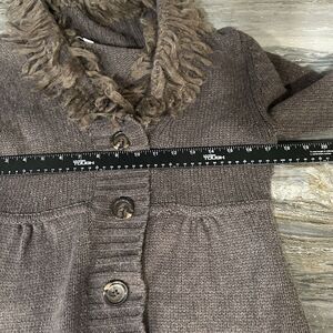 Boden Womens Wool Knit Cardigan Sweater 8 Brown Pockets Buttons Faux Fur