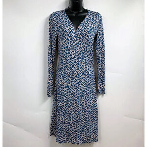 Boden Women's Wrap Stretch WW120 Jersey Dress Blue and Pink Hearts Size 6R