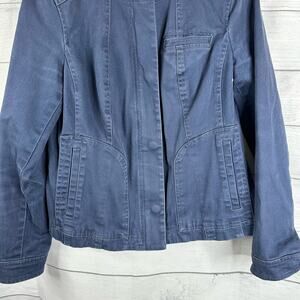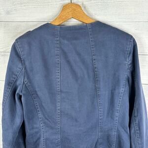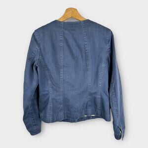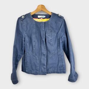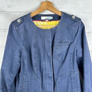 Boden Womens size 4 Blue Medium Wash Stretch Pockets Floral Lined Denim Jacket