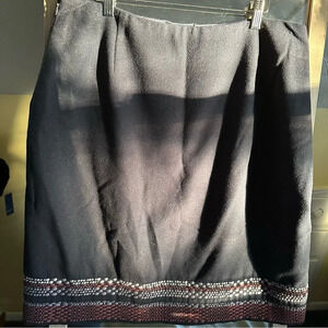 Boden Wool Blend A-Line Skirt Women's Size 12L Blue Embroidered Accents Lined