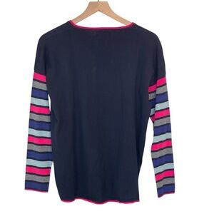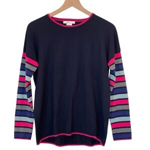Boden Wool/Cotton Blend Crew Neck Sweater, Navy/Pink, Striped Sleeves, Size S