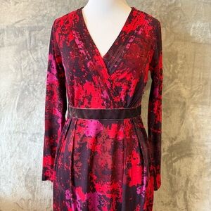 Boden Wrap Cocktail Dress Red and Black Long Sleeve V-Neck Wmn’s 4L