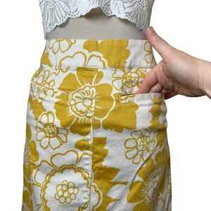 Boden Yellow Floral High Waist Pencil Skirt 4 | Cotton Blend Mod Retro Pockets