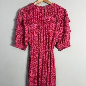 Boden Yoke Detail Floral Jersey Midi Dress Women's 10L Gin Fizz Pink Boho Chic