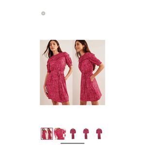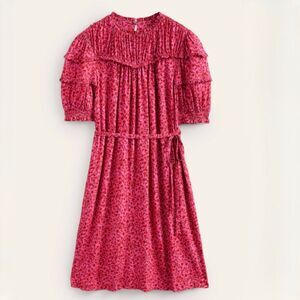 Boden Yoke Detail Jersey Mini Dress size 10L Gin Fizz Abstract Vine