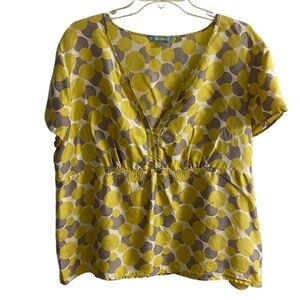 Boden blouse silk polka dots grey/yellow pop over Sz 16