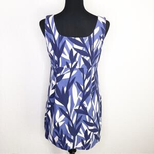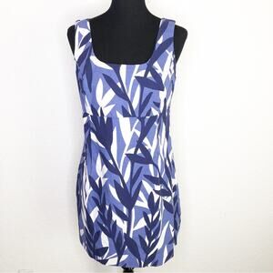 Boden blue and white leaf print sleeveless sheath dress size 8 Petite