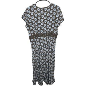 Boden brown and blue floral polka dot print midi dress vneck Plus Size 18L