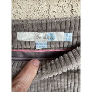 Boden corduroy pleated short skirt w/ leather buckle detail - size 6R - brown. Across the waist is 14 1/2 inches. Waist band to hem of skirt is 18 1/2 inches. Condition is "Pre-owned". Shipped with USPS Priority Mail.
