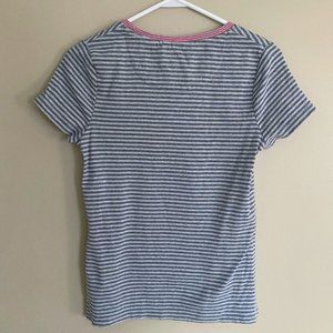 Description: Boden gray horizontal striped, scoop neck, short sleeve tshirt top. Soft, thick, durable material.