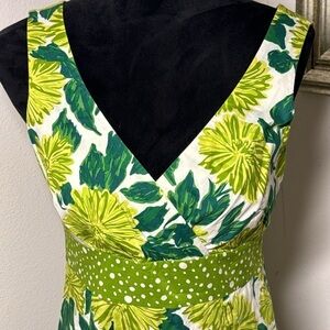Boden green white floral print crossed top sleeveless cotton dress Sz 4R