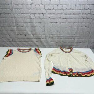 Boden linen two piece Cream Cardigan & top with Multicolor Trim size M
