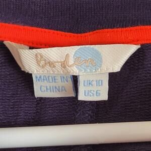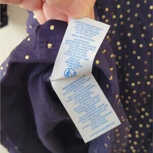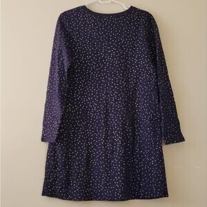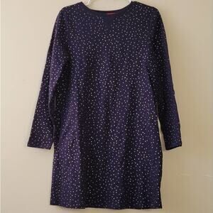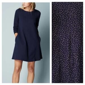 Long sleeves, crew neck, easy relaxed shape with sweatshirt detailing. Pockets. Navy blue with gold dots.