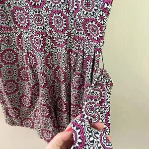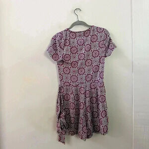 Boden pink and white patterned romper. Ties at the waist and wrap style. Size 2. Excellent used condition