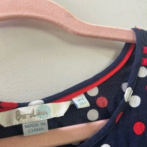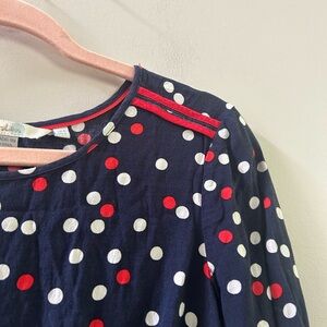 Boden red, white and blue polka dot blouse. Size 2. Three quarter sleeves. Perfect for 4th of July! Excellent condition