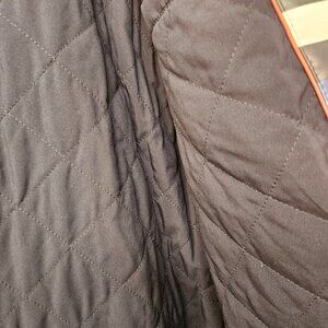 Boden prints never fail to delight, and this rainbow print, translated into a hooded raincoat, brightens any drizzly day, or even a clear one! It's a size 4, with these measurements: length 35 inches, sleeve 24 inches, pit to pit 19 inches, shoulder 16 inches. Front snaps, and front flap pockets at a flattering angle. I believe this to be from 2022, and the notdressedaslamb site was over the moon about it. I include the photo from that site, the last photo here. The penultimate photo shows the one flaw I have found, that white worn mark on the right shoulder. From a smoke-free, dog-loving home.