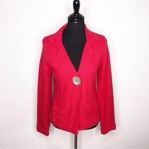 Boden red waffle knit cashmere angora blend button front blazer jacket size 14