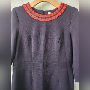 Boden sheath midi dress red collar 3/4 sleeve lined