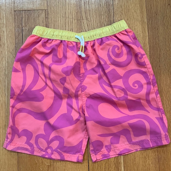 Boden swim trunks, pink with yellow waistband. Size 9-10Y. From smoke-free home.
